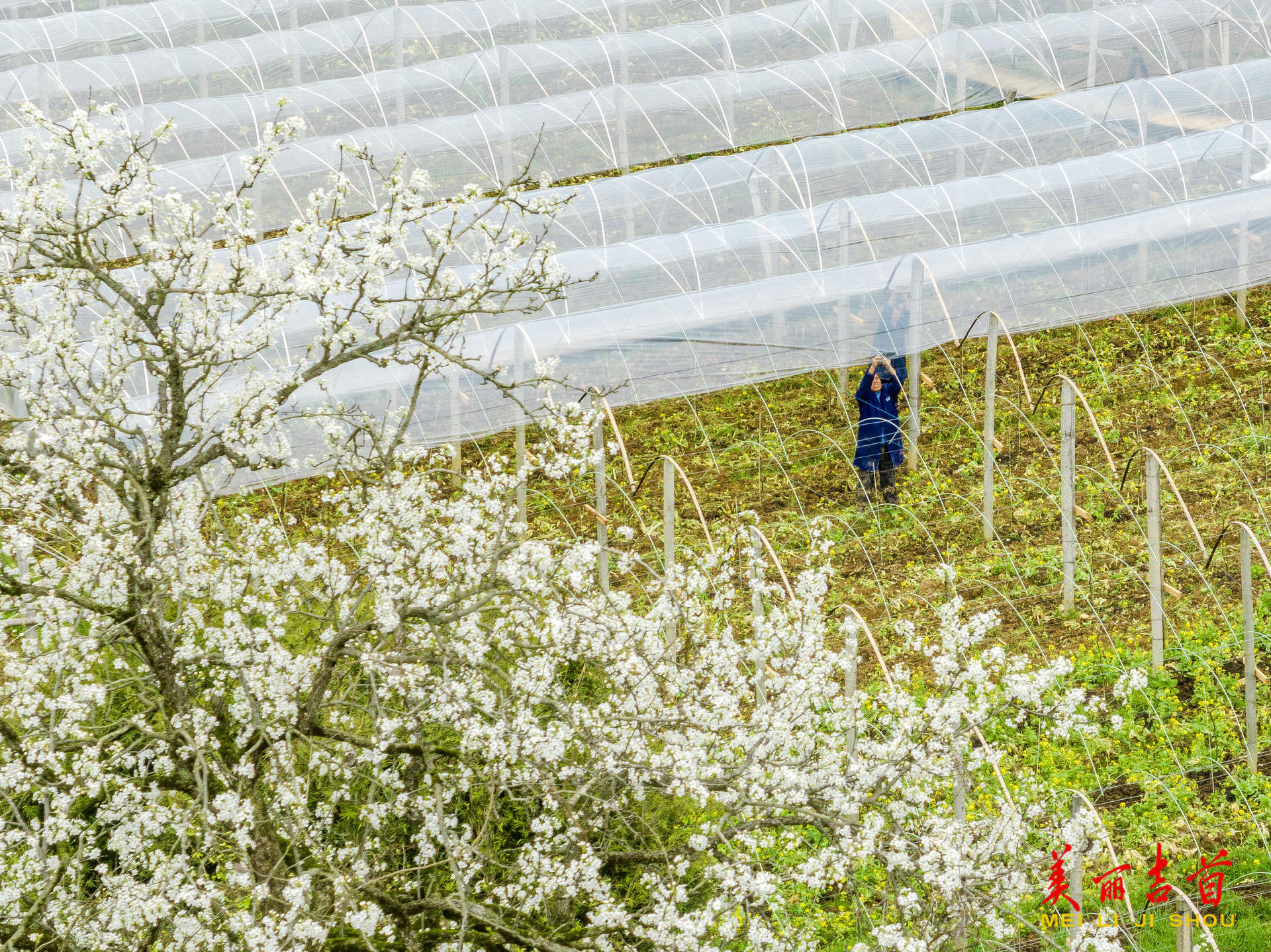 吉首市融媒体中心3月25日讯(全媒体记者 彭璟)3月24日,吉首市河溪镇张排村葡萄种植基地里,村民为葡萄架覆盖薄膜,通过覆膜作业实现保温增湿、防雨防虫,促进葡萄生长,助力增产增收。