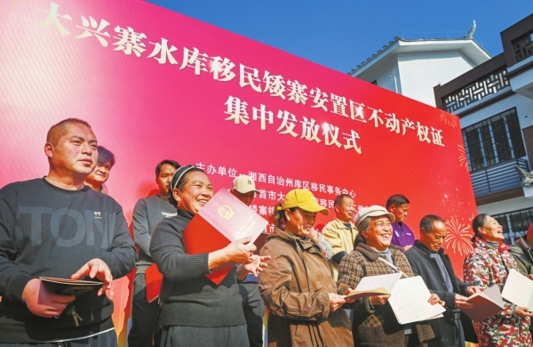 2025年12月18日,吉首市举行大兴寨水库移民矮寨安置区不动产权证集中发放仪式,55户安置户喜领“红本本”,实现从“住有居”迈向“产有权”。