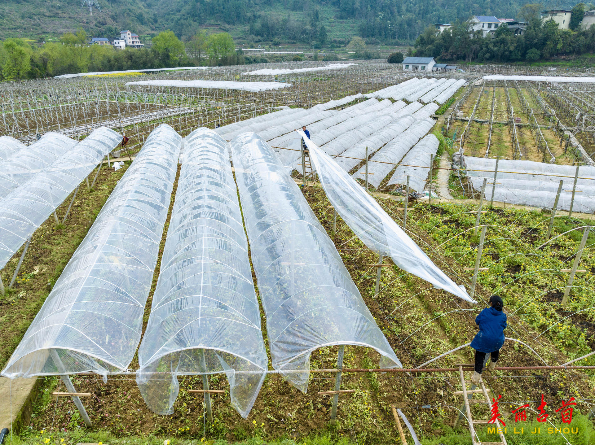 吉首市融媒体中心3月25日讯(全媒体记者 彭璟)3月24日,吉首市河溪镇张排村葡萄种植基地里,村民为葡萄架覆盖薄膜,通过覆膜作业实现保温增湿、防雨防虫,促进葡萄生长,助力增产增收。