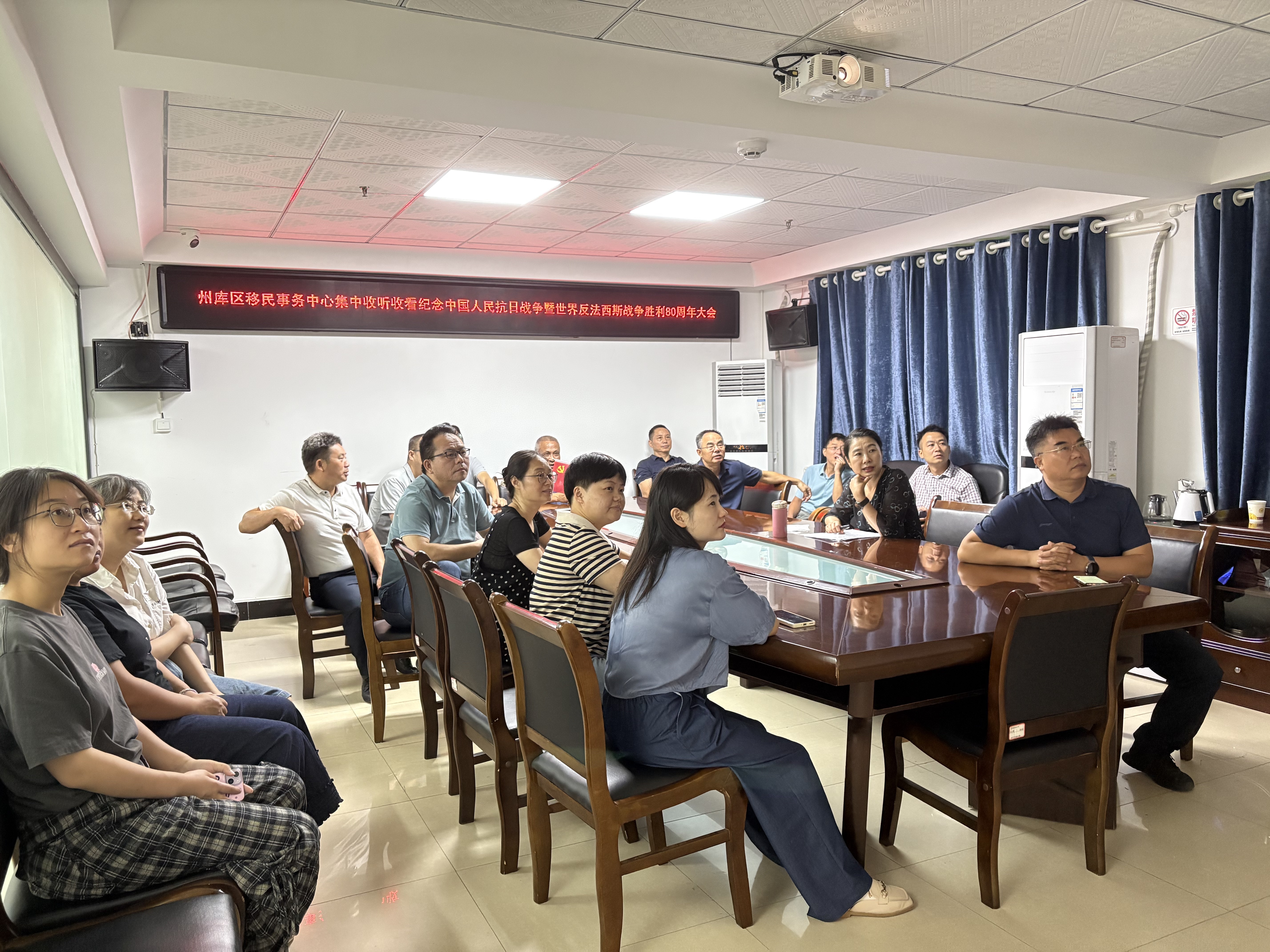 州库区移民事务中心集中收听收看纪念中国人民抗日战争暨世界反法西斯战争胜利80周年大会