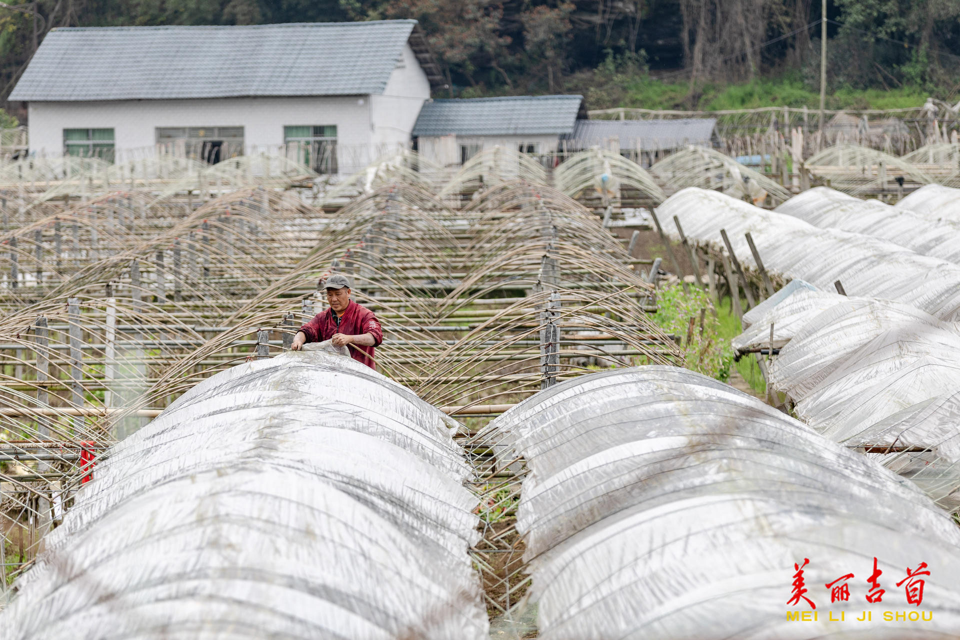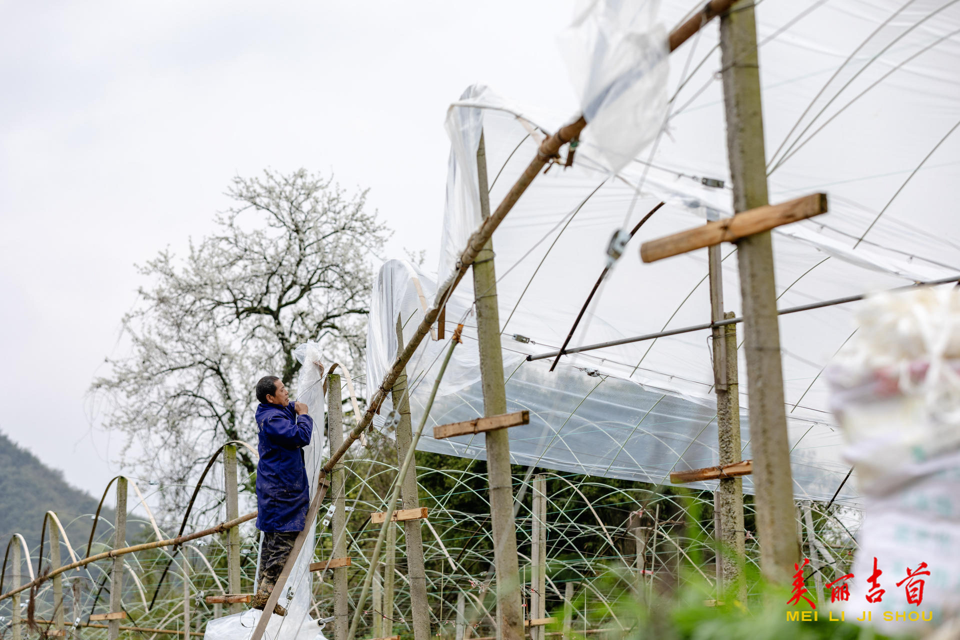 3月25日讯(全媒体记者 彭璟)3月24日,吉首市河溪镇张排村葡萄种植基地里,村民为葡萄架覆盖薄膜,通过覆膜作业实现保温增湿、防雨防虫,促进葡萄生长,助力增产增收。